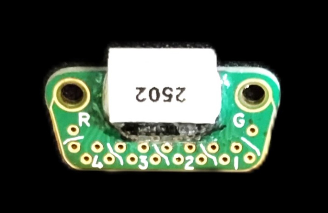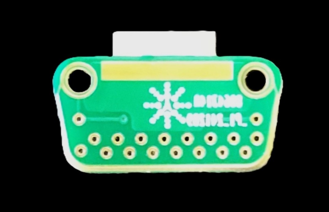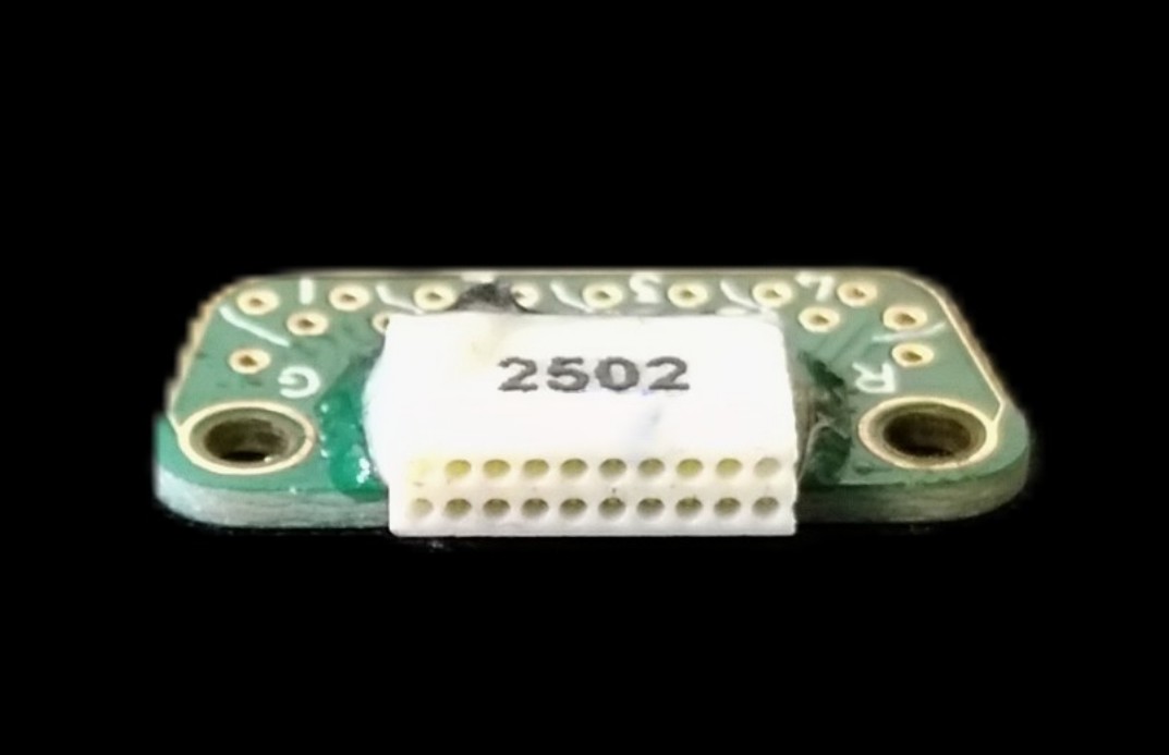 EIB with an Omnetics connector installed in the same plane (instead of at a right angle). This allows for the EIB to be implanted perpendicularly to the skull, saving space for other implants.